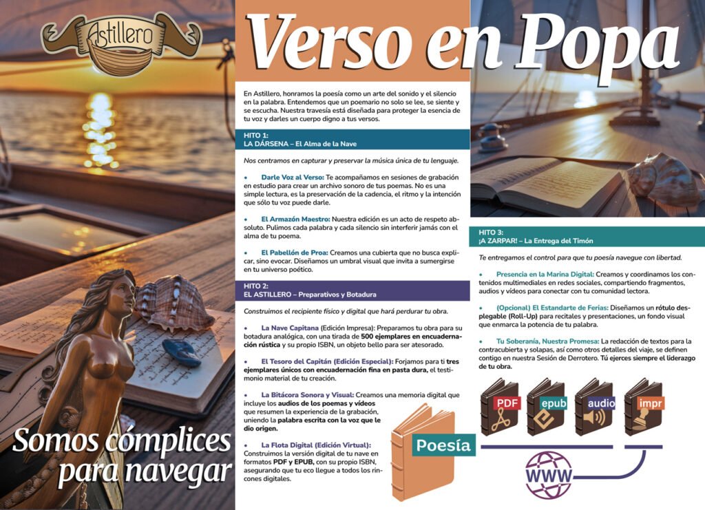 En Astillero, honramos la poesía como un arte del sonido y el silencio en la palabra. Entendemos que un poemario no solo se lee, se siente y se escucha. Nuestra travesía está diseñada para proteger la esencia de tu voz y darles un cuerpo digno a tus versos.